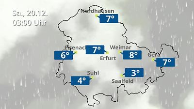 Diese Animation zeigt einen Wetterbericht für Thüringen. Prognose vom 19. Dezember 2025 um 18:10 Uhr