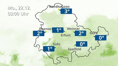 Diese Animation zeigt einen Wetterbericht für Thüringen. Prognose vom 21. Dezember 2025 um 18:10 Uhr