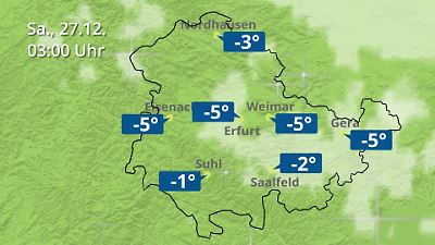 Diese Animation zeigt einen Wetterbericht für Thüringen. Prognose vom 26. Dezember 2025 um 18:10 Uhr