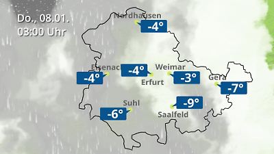 Diese Animation zeigt einen Wetterbericht für Thüringen. Prognose vom 07. Januar 2026 um 18:10 Uhr