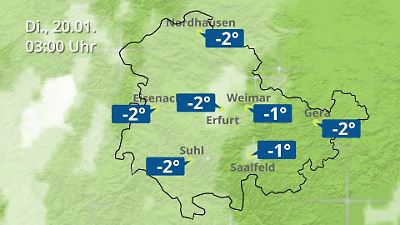 Diese Animation zeigt einen Wetterbericht für Thüringen. Prognose vom 19. Januar 2026 um 18:10 Uhr