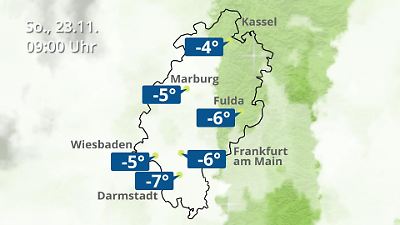 Diese Animation zeigt einen Wetterbericht für Hessen. Prognose vom 23. November 2025 um 00:10 Uhr
