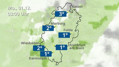 Diese Animation zeigt einen Wetterbericht für Hessen. Prognose vom 30. November 2025 um 18:10 Uhr