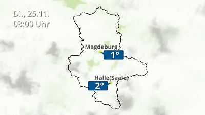 Diese Animation zeigt einen Wetterbericht für Sachsen-Anhalt. Prognose vom 24. November 2025 um 18:10 Uhr