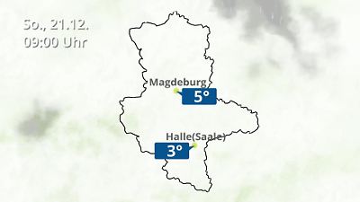 Diese Animation zeigt einen Wetterbericht für Sachsen-Anhalt. Prognose vom 21. Dezember 2025 um 00:10 Uhr