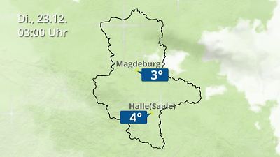 Diese Animation zeigt einen Wetterbericht für Sachsen-Anhalt. Prognose vom 22. Dezember 2025 um 18:10 Uhr