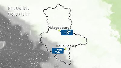 Diese Animation zeigt einen Wetterbericht für Sachsen-Anhalt. Prognose vom 08. Januar 2026 um 18:10 Uhr