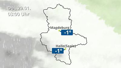 Diese Animation zeigt einen Wetterbericht für Sachsen-Anhalt. Prognose vom 28. Januar 2026 um 18:10 Uhr