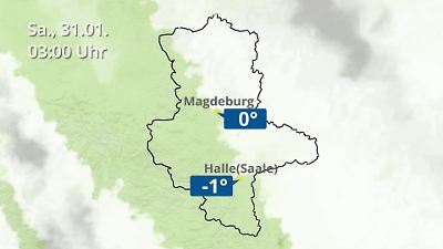 Diese Animation zeigt einen Wetterbericht für Sachsen-Anhalt. Prognose vom 30. Januar 2026 um 18:10 Uhr