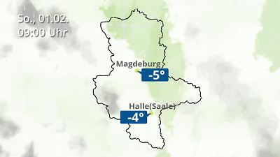 Diese Animation zeigt einen Wetterbericht für Sachsen-Anhalt. Prognose vom 01. Februar 2026 um 00:10 Uhr