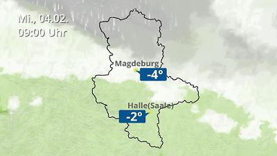 Diese Animation zeigt einen Wetterbericht für Sachsen-Anhalt. Prognose vom 04. Februar 2026 um 00:10 Uhr