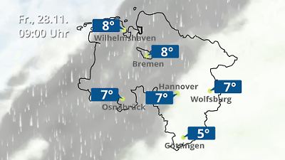 Regen- und Wolkenfilm für Hannover, Osnabrück und WolfsburgBremen und Niedersachsen: Wie wird das Wetter?