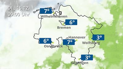 Regen- und Wolkenfilm für Hannover, Osnabrück und WolfsburgBremen und Niedersachsen: Wie wird das Wetter?