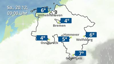Regen- und Wolkenfilm für Hannover, Osnabrück und WolfsburgBremen und Niedersachsen: Wie wird das Wetter?