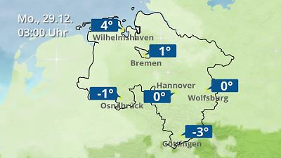 Regen- und Wolkenfilm für Hannover, Osnabrück und WolfsburgBremen und Niedersachsen: Wie wird das Wetter?