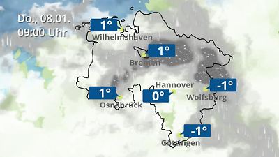 Regen- und Wolkenfilm für Hannover, Osnabrück und WolfsburgBremen und Niedersachsen: Wie wird das Wetter?