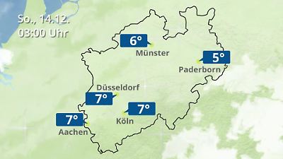 Diese Animation zeigt einen Wetterbericht für Nordrhein-Westfalen. Prognose vom 13. Dezember 2025 um 18:10 Uhr