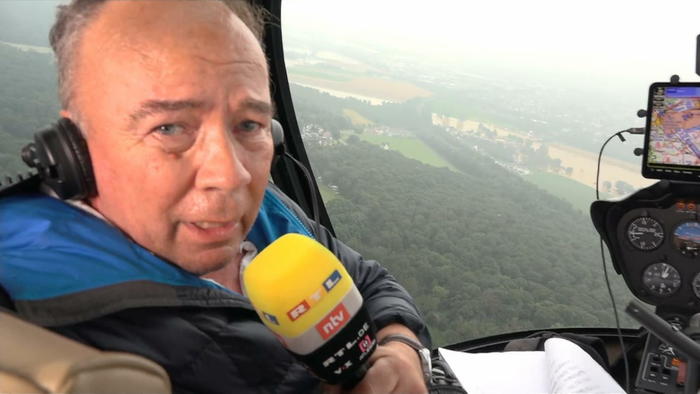 Hochwasser überflutet ErftstadtRTL-Reporter Ulrich Klose berichtet live aus Helikopter
