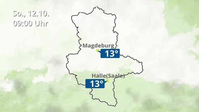 Diese Animation zeigt einen Wetterbericht für Sachsen-Anhalt. Prognose vom 12. Oktober 2025 um 00:10 Uhr
