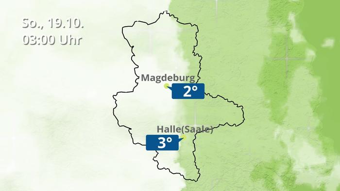 Diese Animation zeigt einen Wetterbericht für Sachsen-Anhalt. Prognose vom 18. Oktober 2025 um 18:10 Uhr