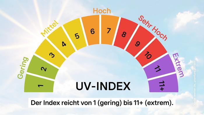 Der UV-Index informiert über die UV-Strahlung und somit über die Höhe der Gefährdung der Sonnenstrahlen für uns Menschen.