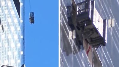 Sie wollen nur ihren Job machen. Aber dann schleudern starke Winde die Plattform der Männer immer wieder gegen die Außenfassade des Gebäudes schleudern.