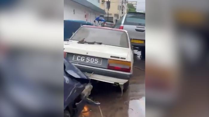 Home•Videos•Heftige Winde und Überschwemmungen - Zyklon stapelt Autos auf Mauritius übereinander•