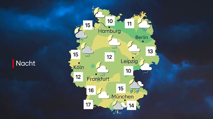 Den Gewittern geht in der Nacht die Puste aus