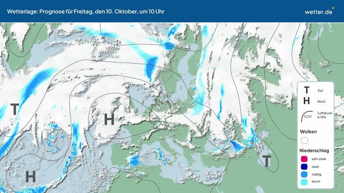 Über den Britischen Inseln setzt sich jetzt Hoch Sieglinde fest. Damit steigen bei uns in Deutschland allmählich die Chancen auf mehr Sonne. Gleichzeitig hat sich an der Südflanke des Hochs ein neues Tief gebildet. Das trägt international den Namen Alice und könnte - angereichert mit kühlerer Luft in der höheren Atmosphäre - zum Teil heftige bis lebensgefährliche Wassermassen bringen.